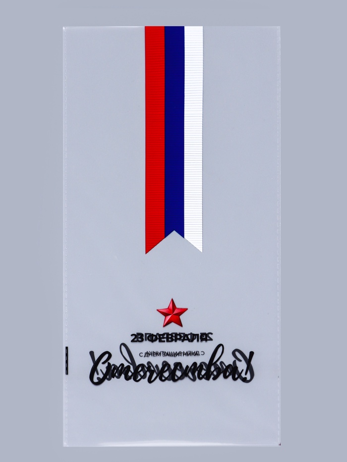 Фасовочный пакет с дизайном «Звезда с ленточкой» — это компактное и стильное решение для упаковки подарков, хранения вещей или фасовки продуктов. Его праздничный дизайн в цветах триколора с армейской символикой идеально подходит для поздравлений на 23 Февраля.