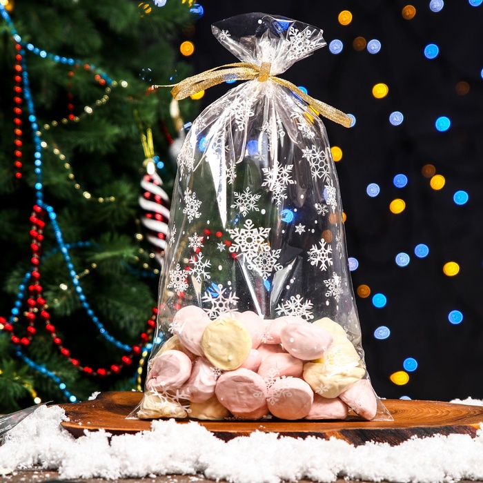 Пакет фасовочный новогодний БОПП, с новогодним рисунком «Снег», 20×35 см
