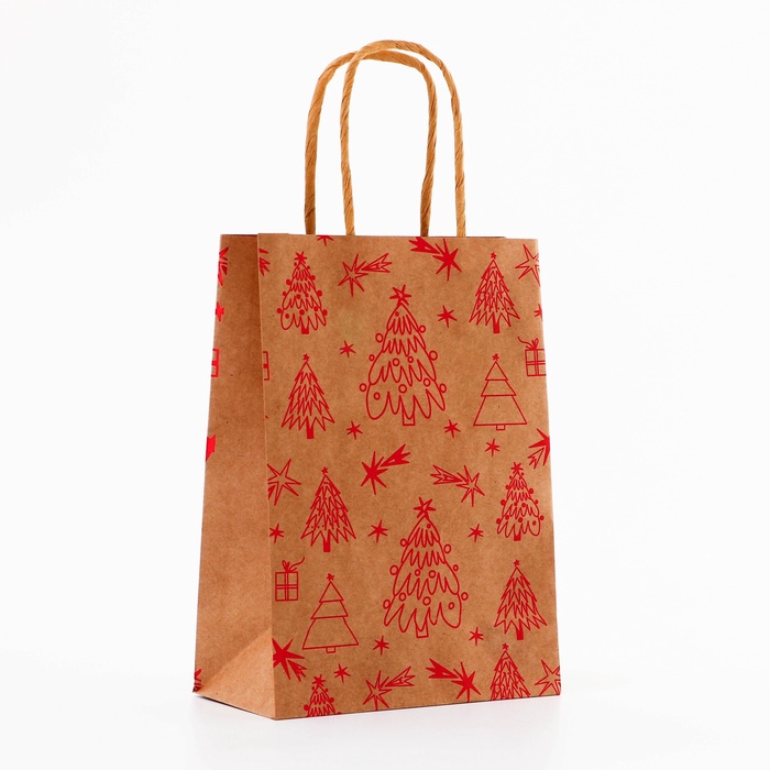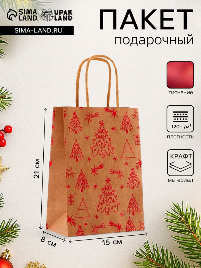 Пакет крафт новогодний 15 × 21 × 8 см - это стильное и функциональное решение для упаковки и транспортировки подарков в преддверии зимних праздников.