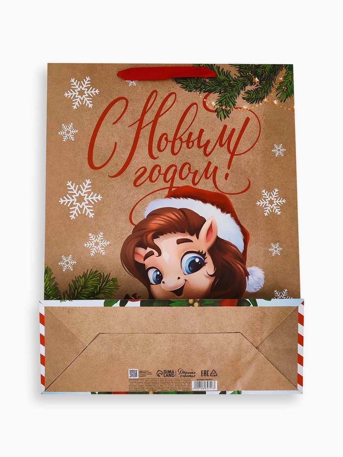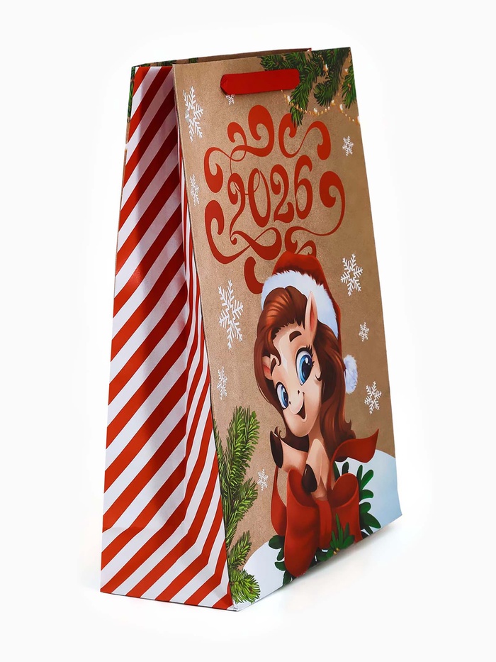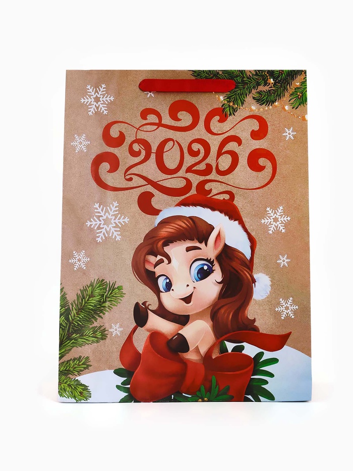Пакет крафтовый подарочный «Новый год 2026», лошадь, L 31 × 40 × 11.5 см