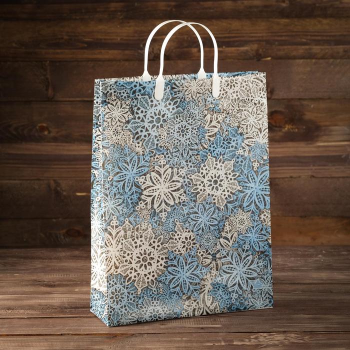 Новогодний подарочный пакет с ярким, красочным рисунком создаст праздничное настроение.