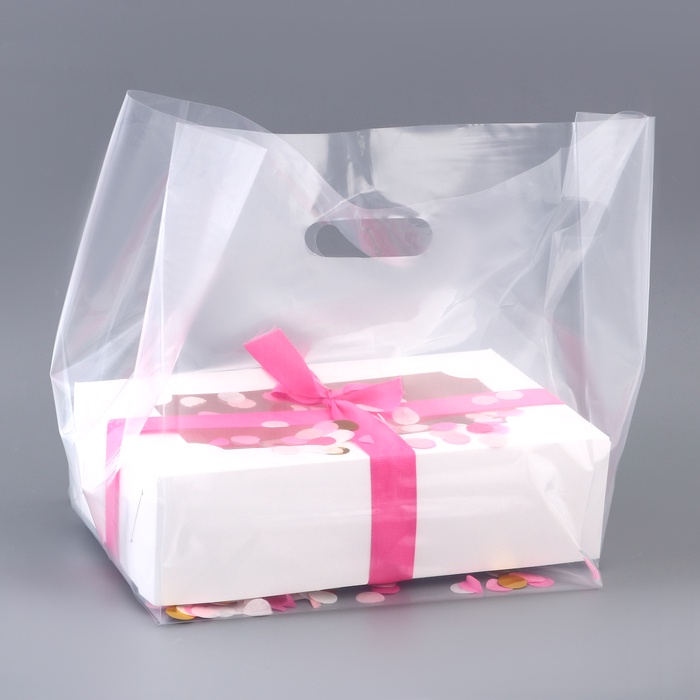 Пакет квадратный полиэтиленовый с вырубной ручкой, упаковка, прозрачный, 23,5х38+22см ± 5% 60 мкм