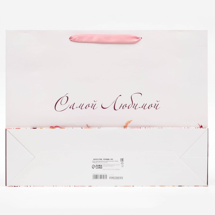 - Удобство использования: пакет оснащён прочным картонным дном и ручкой шнур, что облегчает переноску подарка.
