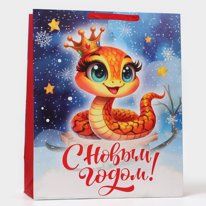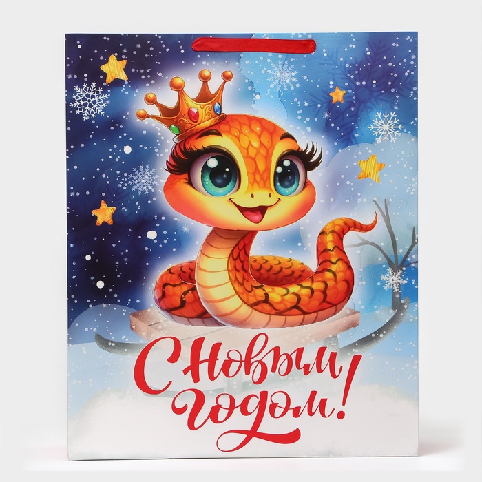 Пакет ламинированный новогодний вертикальный размером XL 40 × 49 × 19 см — идеальный выбор для упаковки новогодних подарков!