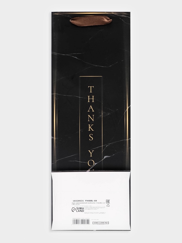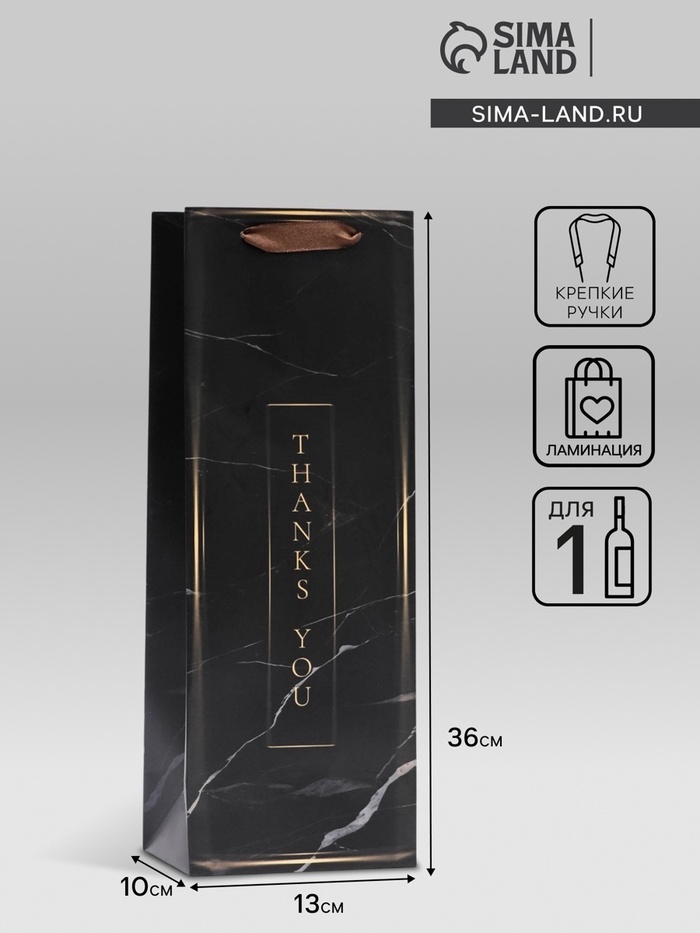 Пакет ламинированный под бутылку «Спасибо»,13×36×10 см