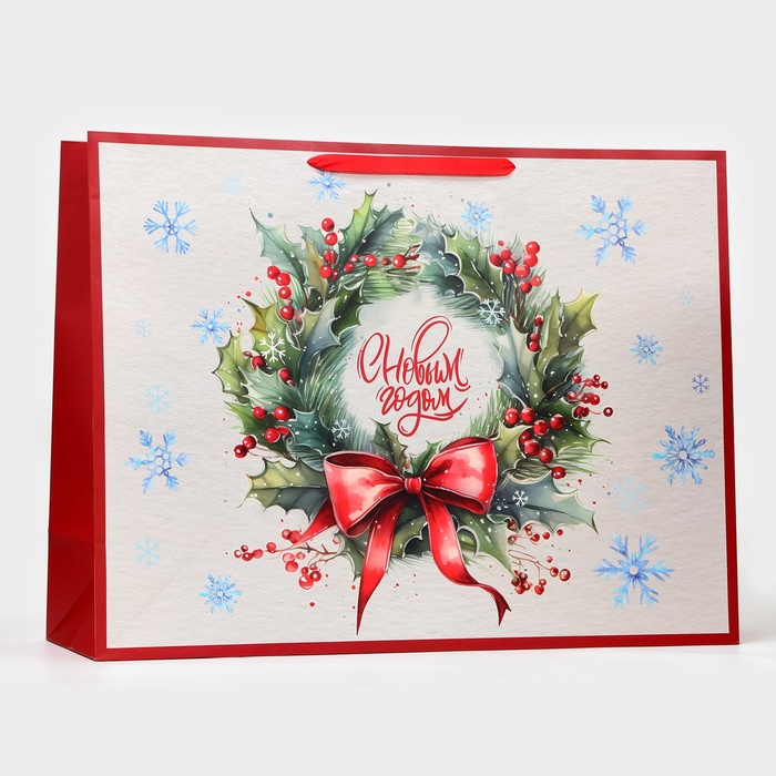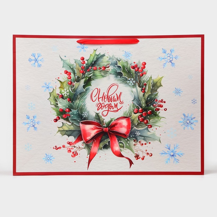 Пакет ламинированный новогодний горизонтальный размером XXL 46 х 61 х 20 см — идеальный выбор для упаковки новогодних подарков!