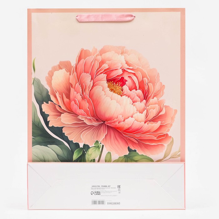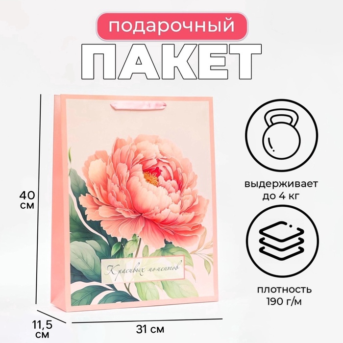 - Удобство использования: пакет оснащён прочным картонным дном и ручкой шнур, что облегчает переноску подарка.