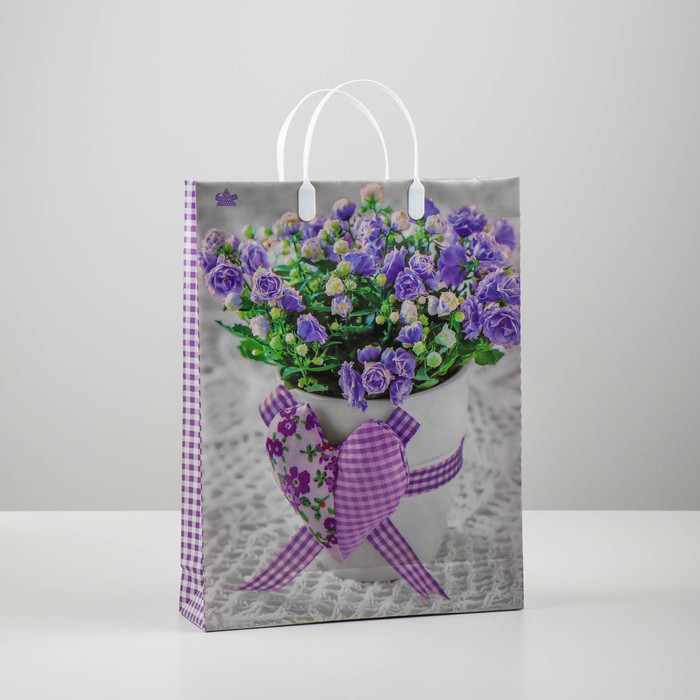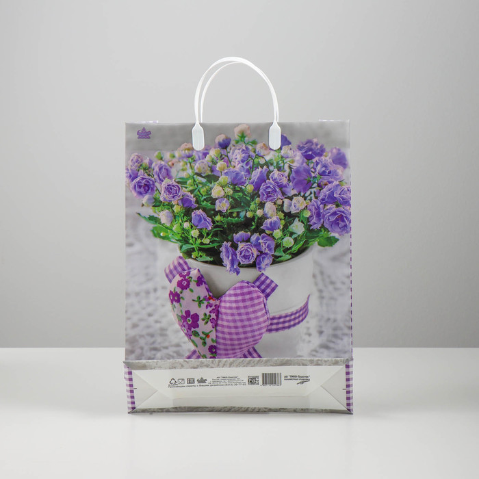 Пакет "Лиловое сердце", мягкий пластик, 30 х 9 х 40 см, 140 мкм — эксклюзивный товар «2 в 1», так как сочетает в себе пластиковую сумку для бытовых и хозяйственных нужд и подарочный пакет универсального назначения.