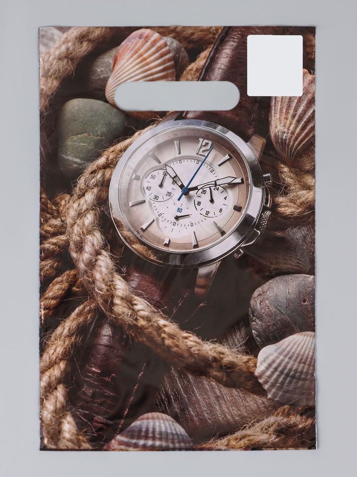 - Графичный дизайн с морским и деловым акцентом: Изображение якоря, штурвала, часов и галстука на коричневом фоне отсылает к миру путешествий, стиля и деловых аксессуаров. Такой пакет подходит для подарка мужчине, но также может понравиться и женщине, увлекающейся морской тематикой или ценящей сдержанный дизайн.