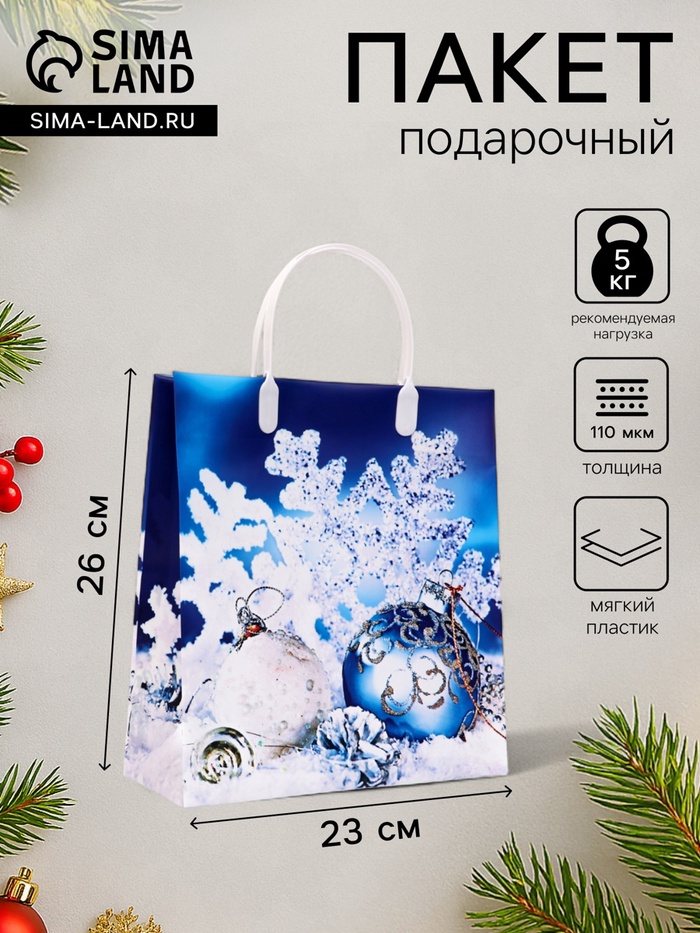 Новогодний пакет из мягкого пластика - пакет универсального назначения. Он сочетает в себе пластиковую сумку для бытовых и хозяйственных нужд и подарочный пакет.