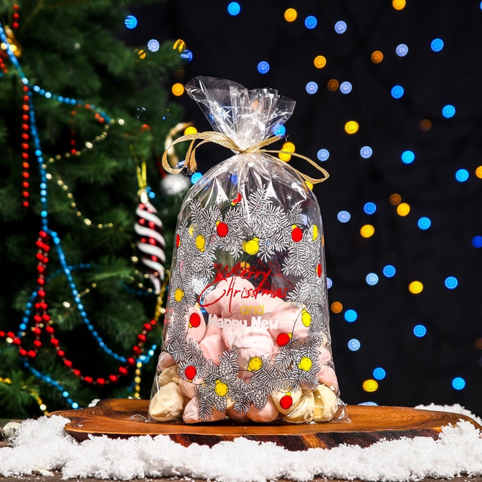 Новогодний Пакет фасовочный БОПП - это идеальное решение для упаковки ваших праздничных подарков с элегантным и праздничным стилем. Изготовленный из прочного биаксиально-ориентированного полипропилена (БОПП), этот пакет обеспечивает прозрачность и блеск, придавая вашим подаркам эффектное и яркое визуальное восприятие.