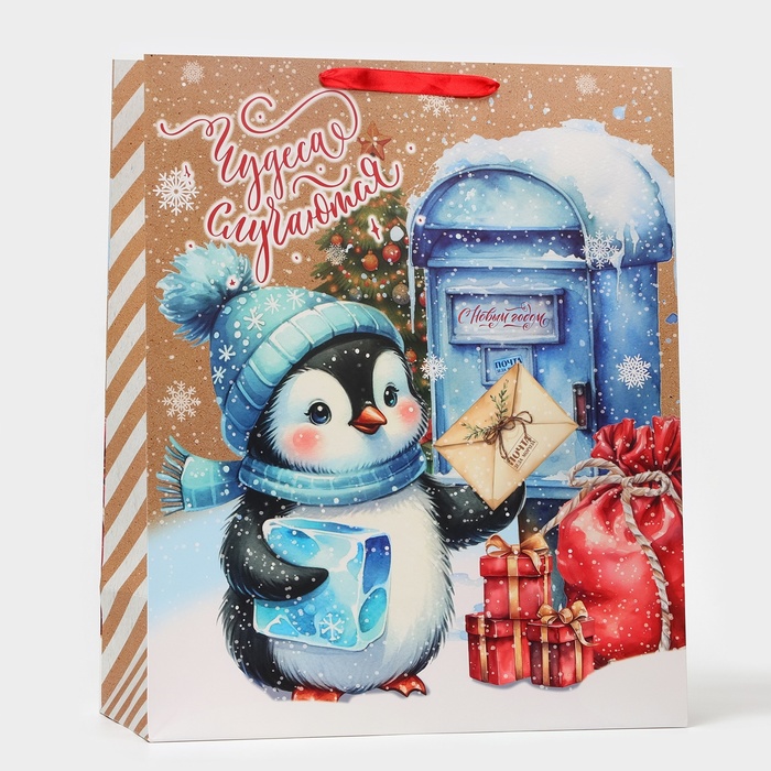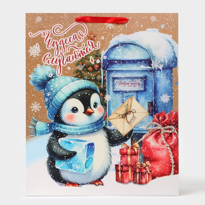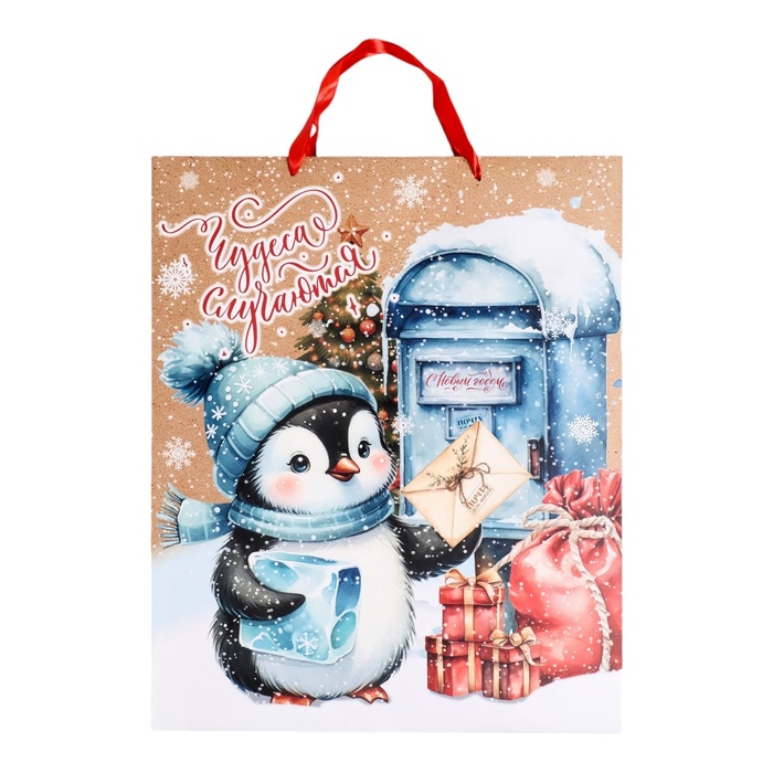 Пакет ламинированный новогодний вертикальный размером XL 40 × 49 × 19 см — идеальный выбор для упаковки новогодних подарков!
