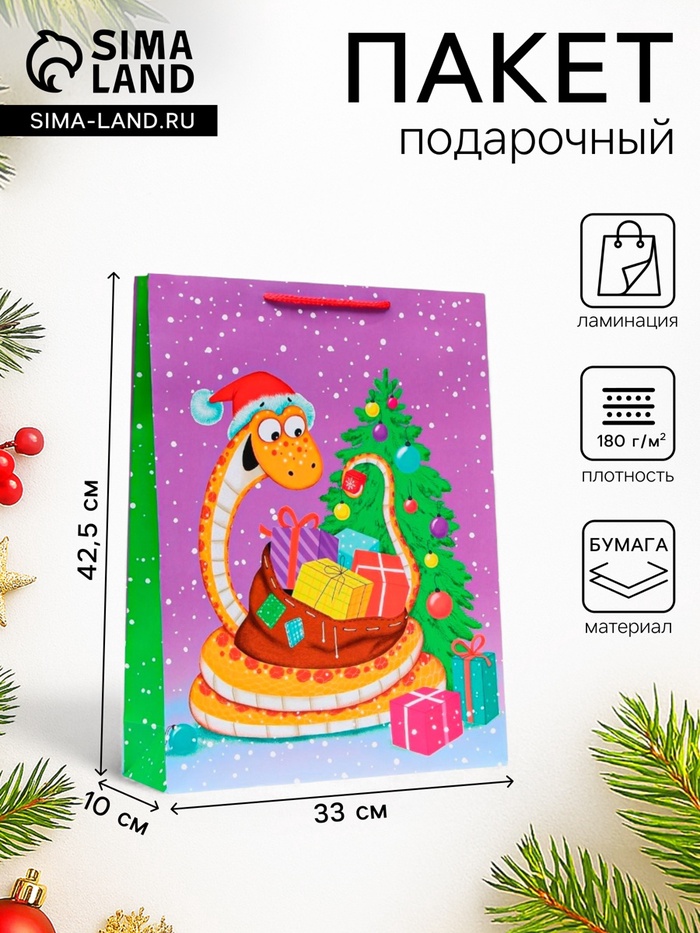 Подарочный новогодний пакет имеет оптимальные размеры, позволяющие упаковать различные предметы, от небольших сувениров до крупных подарков. Он также может быть использован для хранения и транспортировки продуктов питания, например сладких подарков под ёлку, так как материал, из которого он изготовлен, является безопасным для контакта с пищевыми продуктами.