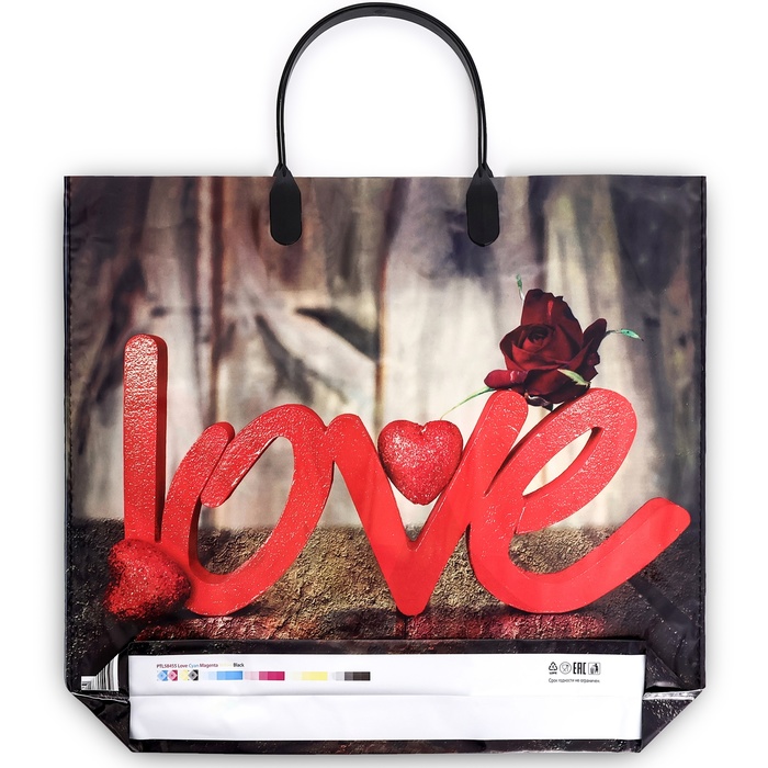 - Универсальная тематика: Романтичный дизайн с надписями подходит не только для Дня святого Валентина. Пакет используют для свадебных подарков, годовщин или просто как признание в чувствах без повода.