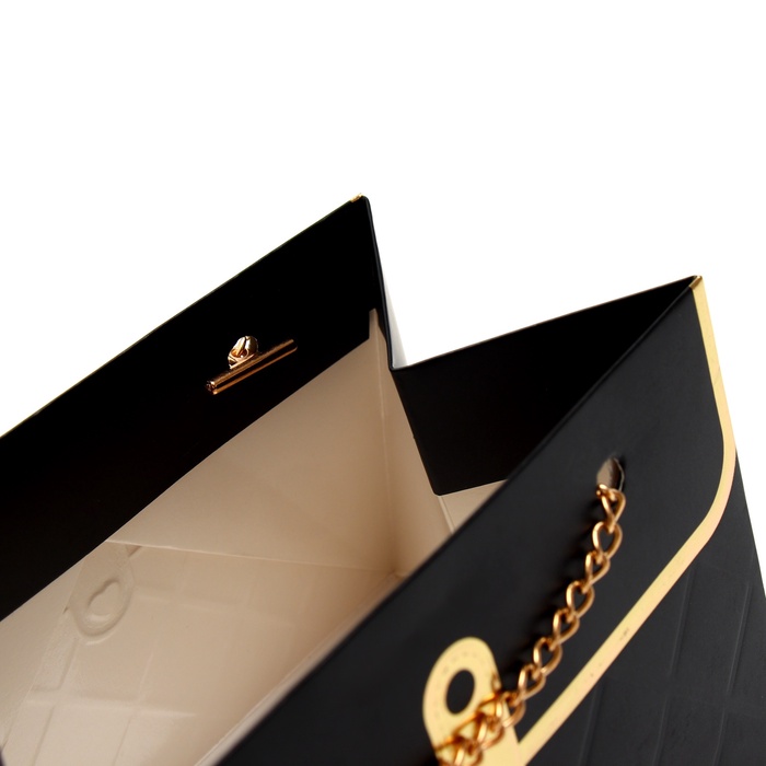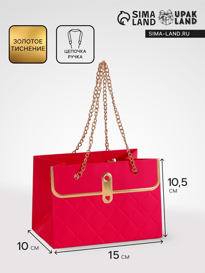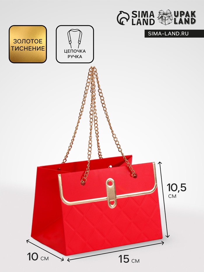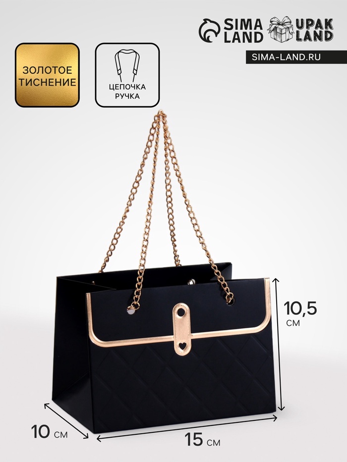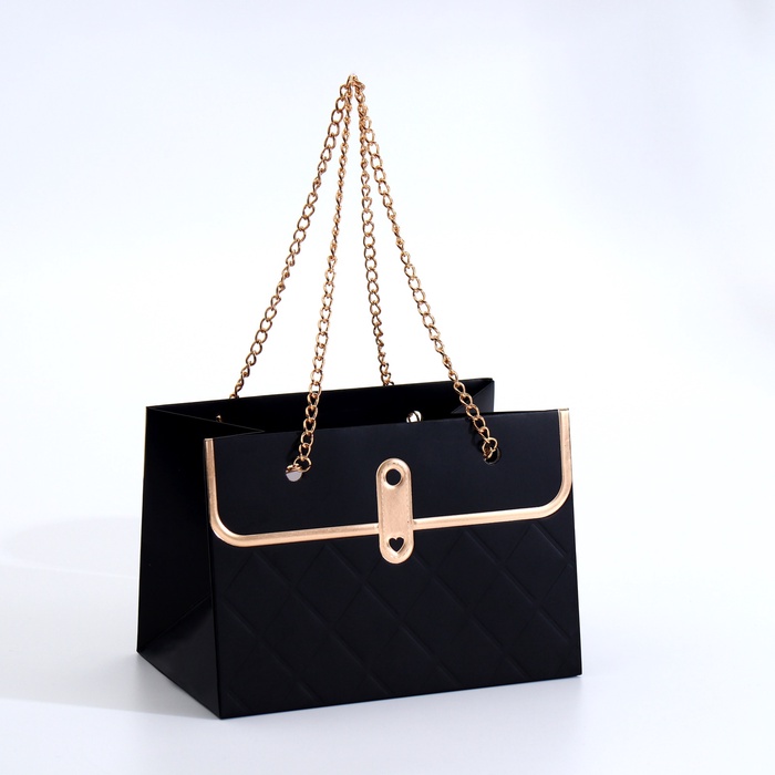 - Металлическая ручка и цепь: Удобно носить, при этом выглядит как аксессуар из бутика. Цепь добавляет шарма, превращая простую упаковку в стильный элемент подарка.