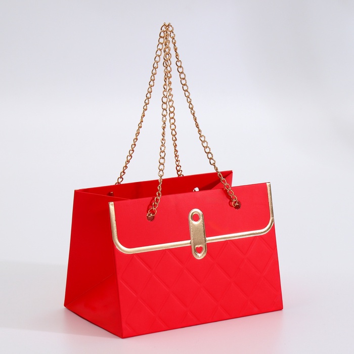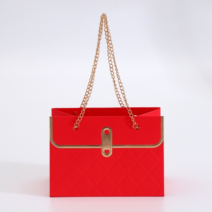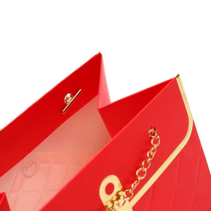 - Металлическая ручка с цепью: Удобно носить, при этом выглядит как стильный аксессуар. Цепь добавляет торжественности — такой пакет не спутаешь с обычной упаковкой.
