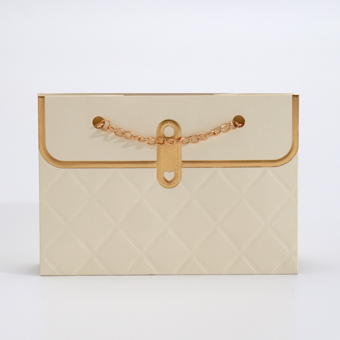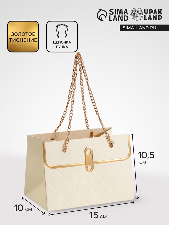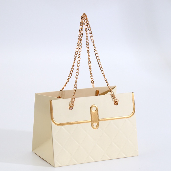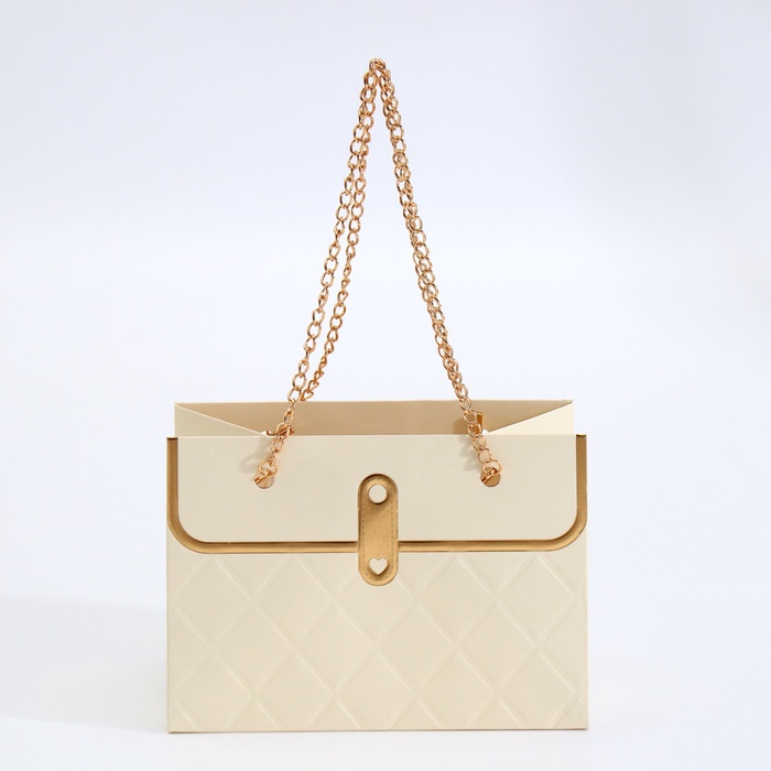 - Металлическая ручка с цепью: Удобно носить, при этом выглядит как дорогой аксессуар. Декоративная цепь добавляет шарма, делая упаковку самостоятельным элементом подарка.