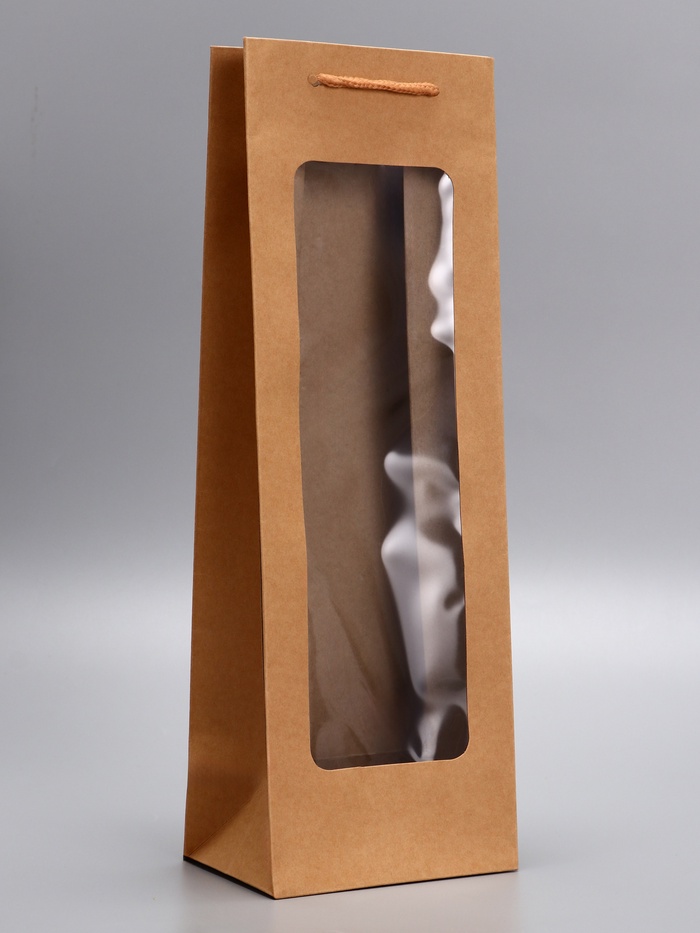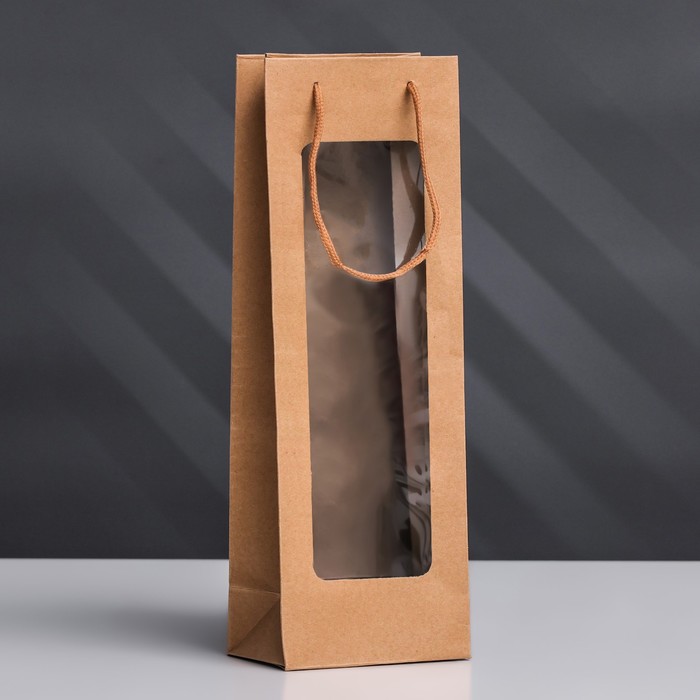 Стильная упаковка с натуральным шармом! Крафт-пакет для бутылки с окошком (12.5×8.5×36 см) – экологичное решение для презентабельной подачи напитков. Прозрачная вставка из ПВХ сочетает практичность с природной эстетикой крафтовой бумаги.