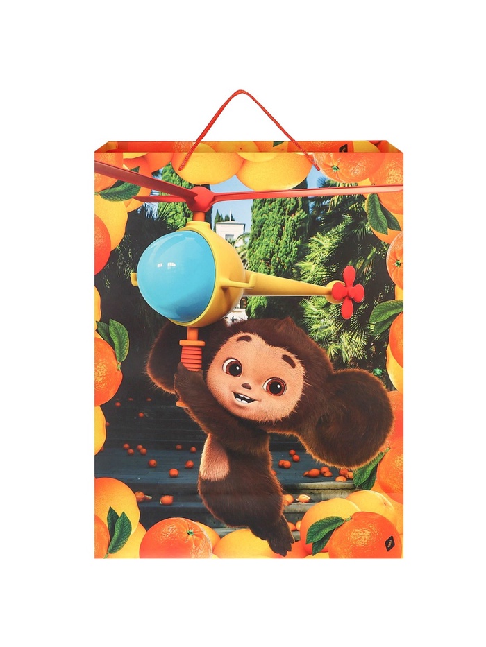 Пакет подарочный, 46х61х20 см, упаковка, Чебурашка