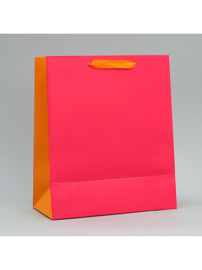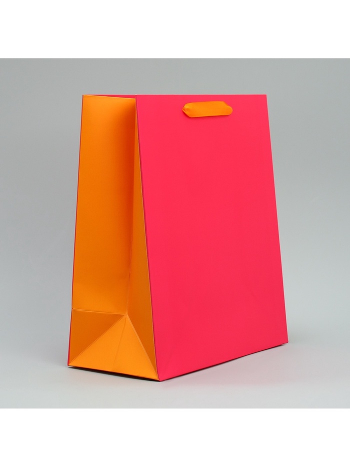 Пакет подарочный двухцветный, упаковка, «Розовый-оранжевый», ML 23 х 27 х 11.5 см