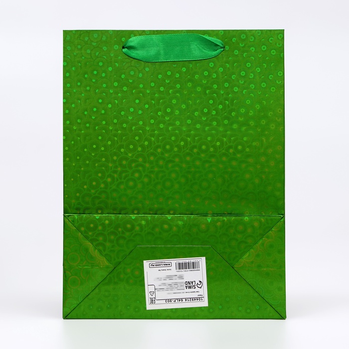 - Эффектный фольгированный блеск: Голографическое зелёное покрытие переливается глубокими изумрудными и бирюзовыми оттенками. Такой пакет выглядит дорого и современно, делая даже самый скромный подарок визуально значимым.