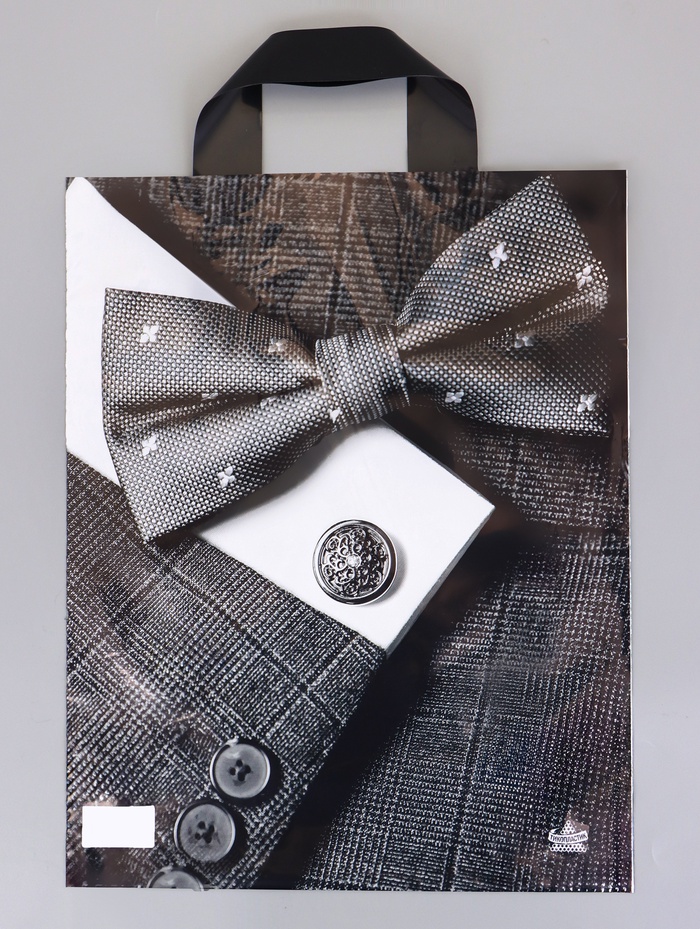 Подарочный пакет «Галант» с петлевой ручкой — это лаконичная упаковка, дизайн которой построен на классических мужских атрибутах. Серый фон с графичными изображениями галстука, часов и туфлей задает строгий и стильный тон.