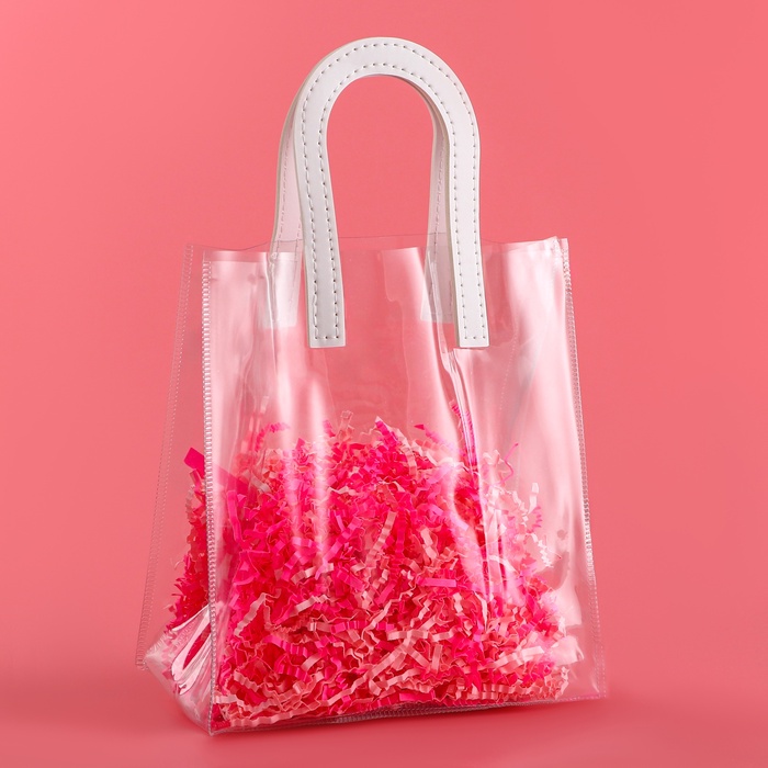 • Прозрачная сумочка с фигурной ручкой идеально подходит для различных видов подарков, начиная от косметики и заканчивая небольшими предметами интерьера.