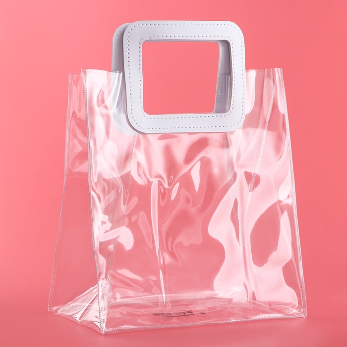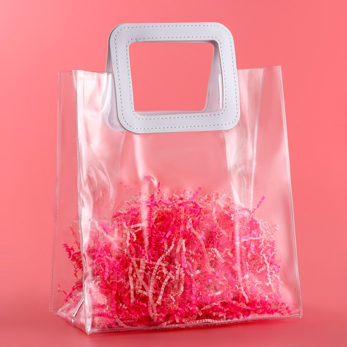 - Прозрачная сумочка с фигурной ручкой идеально подходит для различных видов подарков, начиная от косметики и заканчивая небольшими предметами интерьера.