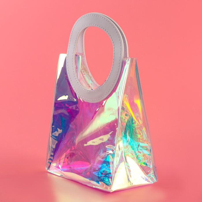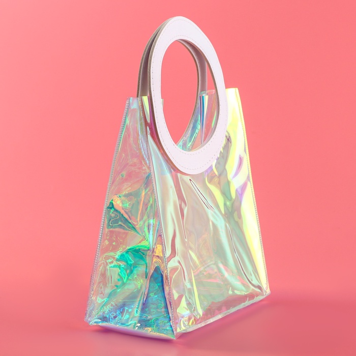 Пакет подарочный из ПВХ, белый, ирридисцентный, 20×18×10 см