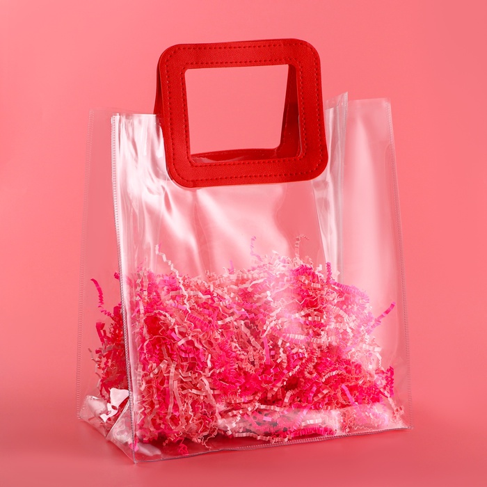 • Прозрачная сумочка с фигурной ручкой идеально подходит для различных видов подарков, начиная от косметики и заканчивая небольшими предметами интерьера.