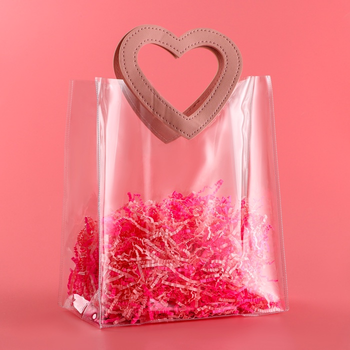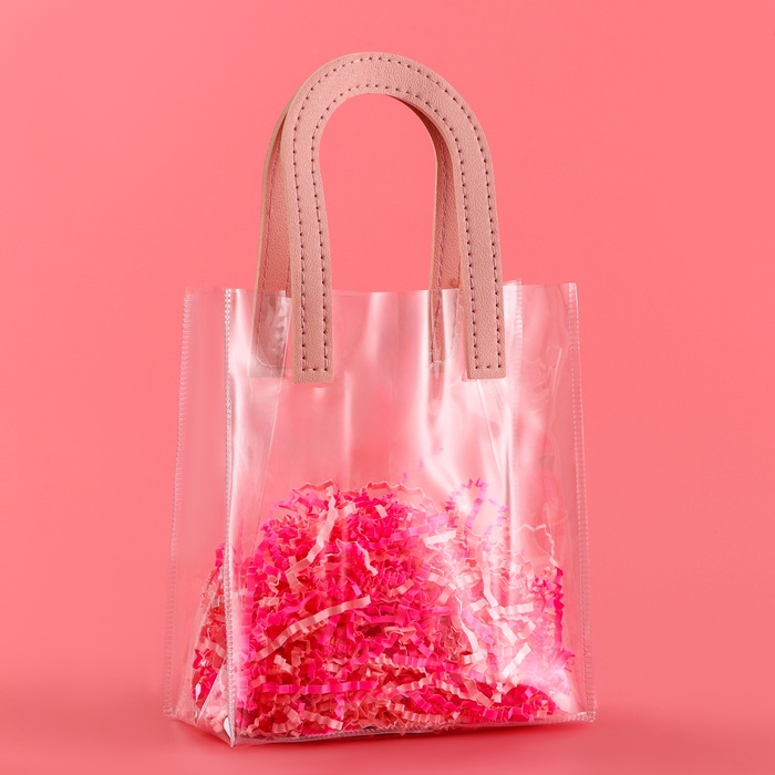 - Прозрачная сумочка с фигурной ручкой идеально подходит для различных видов подарков, начиная от косметики и заканчивая небольшими предметами интерьера.