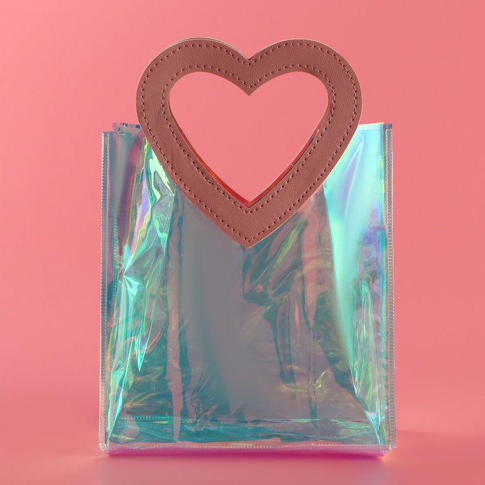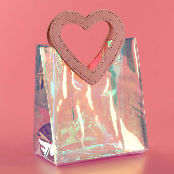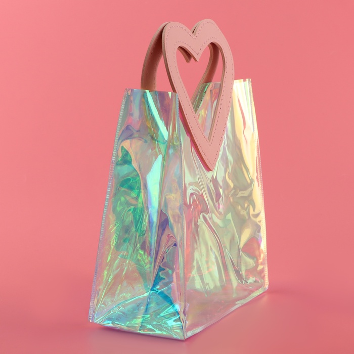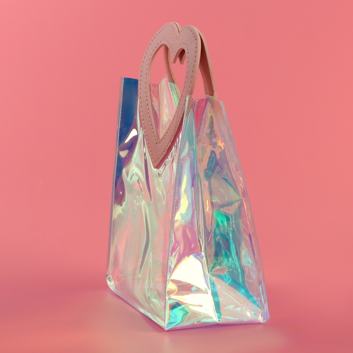 Пакет подарочный из ПВХ, розовый, ирридисцентный, 20×18×10 см