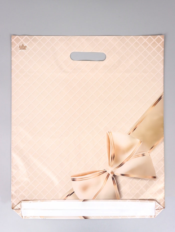 - Повышенная плотность для презентабельности: Пакет из ПВД толщиной 60 мкм хорошо держит форму, не мнется и обеспечивает дополнительную защиту для ценного содержимого. Он сохраняет безупречный вид до момента вручения.