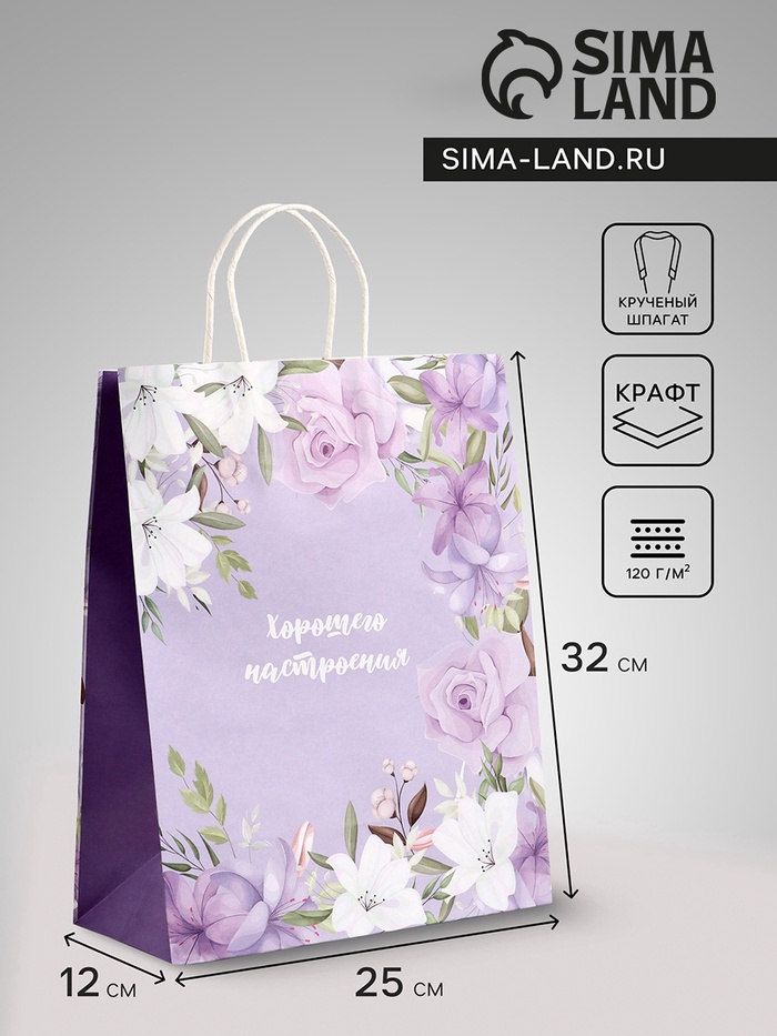 Пакет подарочный крафт, «Хорошего настроения», 25×12×32 см