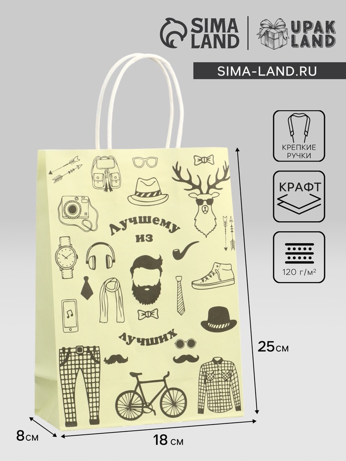 Этот подарочный пакет из крафт-бумаги на 23 февраля идеально подходит для мужских подарков.