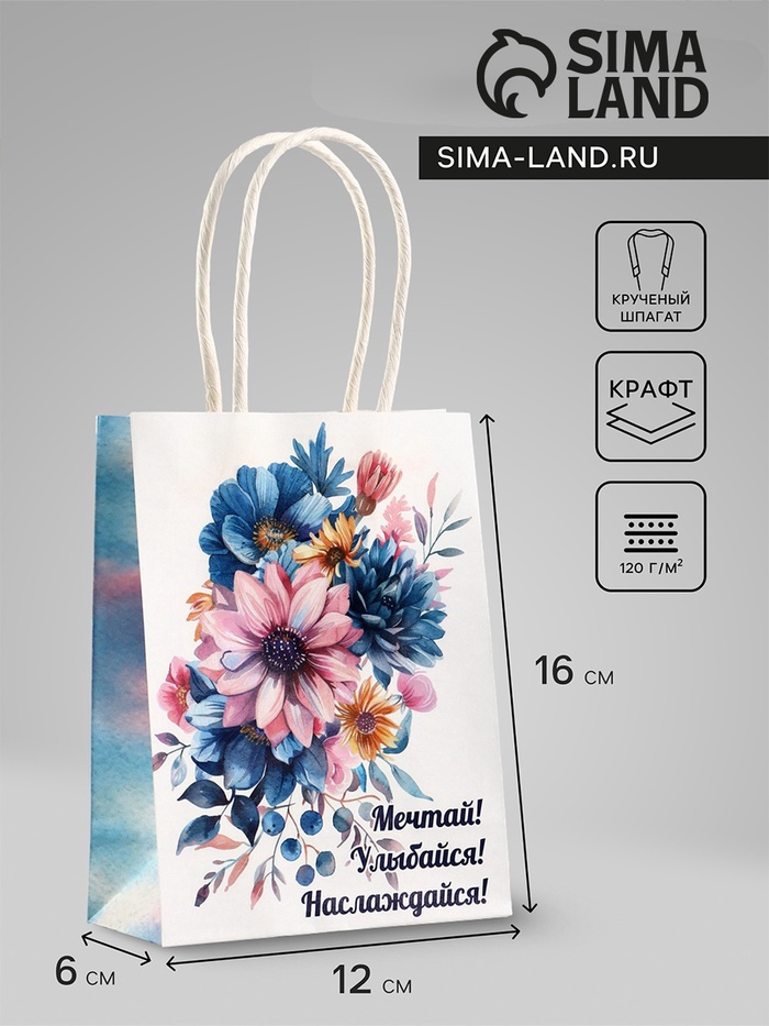 Плотность бумаги 120 г/м² гарантирует прочность и надёжность пакета, позволяя безопасно переносить даже хрупкие и ценные вещи.