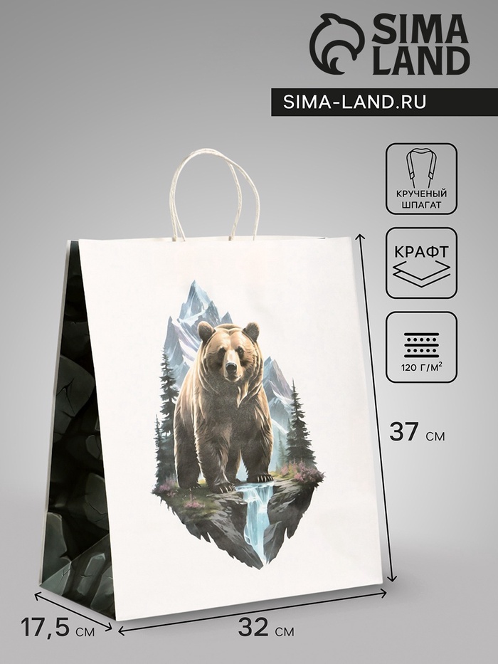 Крафт-пакет «Медведь» — это стильная и функциональная упаковка для подарков, которая подойдёт для праздников, связанных с природой, патриотическими темами или просто для создания особого настроения. Его крупный размер и прочная бумага плотностью 120 г/м² делают его идеальным выбором для объёмных подарков.