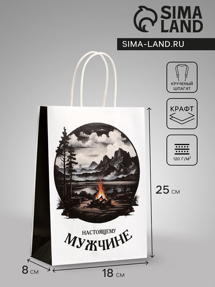 Крафт-пакет «Настоящему мужчине» — это элегантная упаковка для подарков, которая подчеркнёт стиль и индивидуальность. Его лаконичный дизайн с надписями и цифрами идеально подходит для мужских праздников, таких как 23 Февраля или день рождения. Прочная бумага плотностью 120 г/м² обеспечивает надёжность и презентабельный вид.