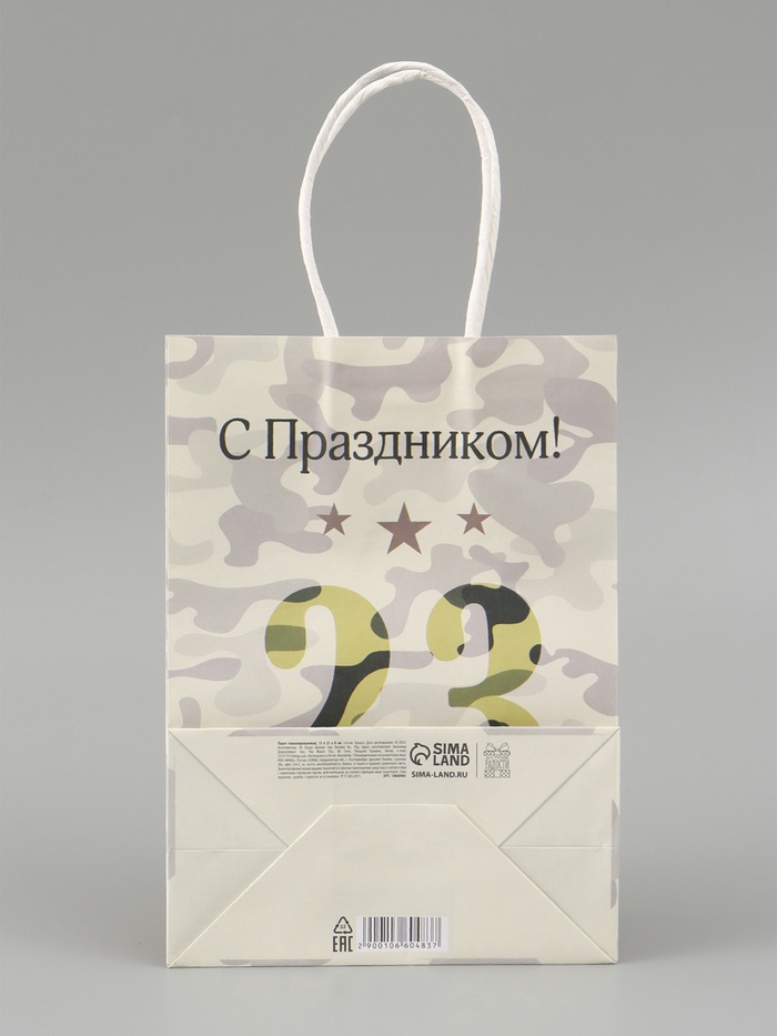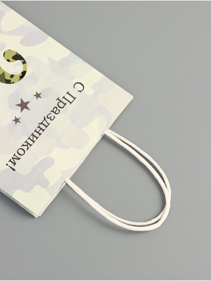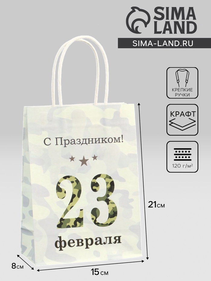 Этот подарочный пакет из крафт-бумаги на 23 февраля идеально подходит для мужских подарков.