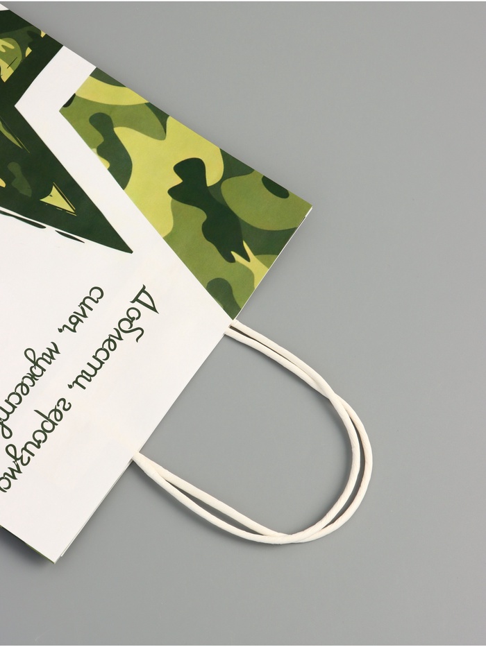 Этот подарочный пакет из крафт-бумаги на 23 февраля идеально подходит для мужских подарков.