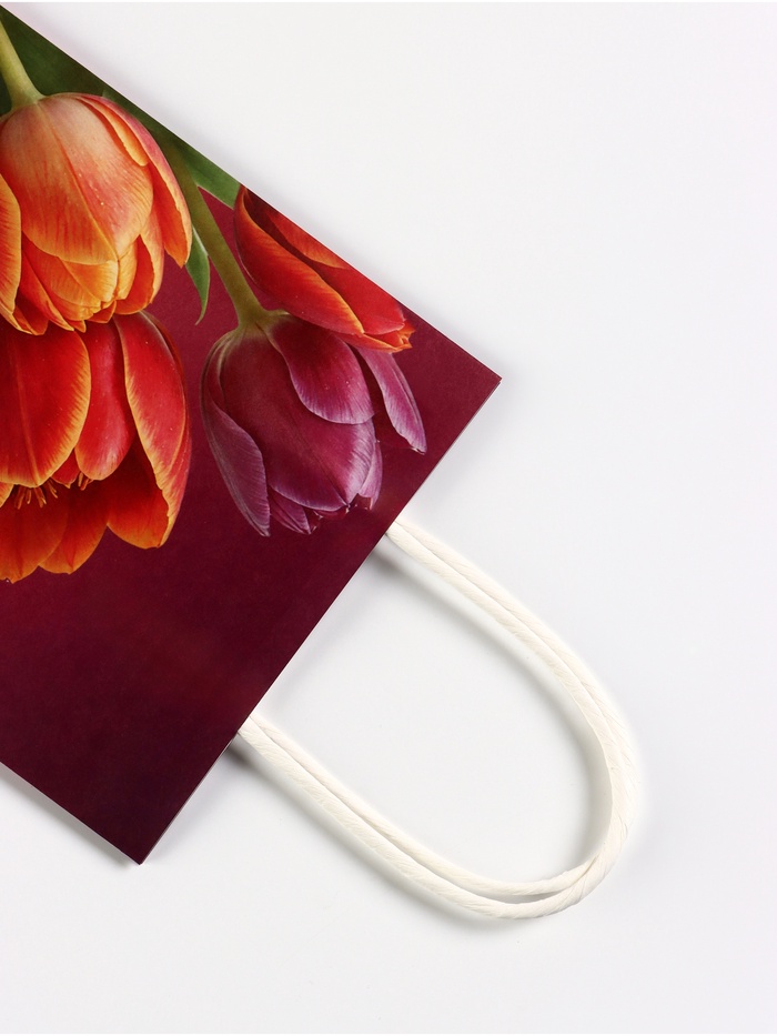 Плотность бумаги 120 г/м² гарантирует прочность и надёжность пакета, позволяя безопасно переносить даже хрупкие и ценные вещи.