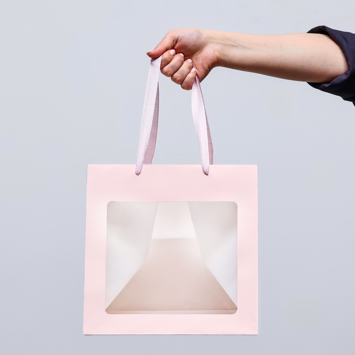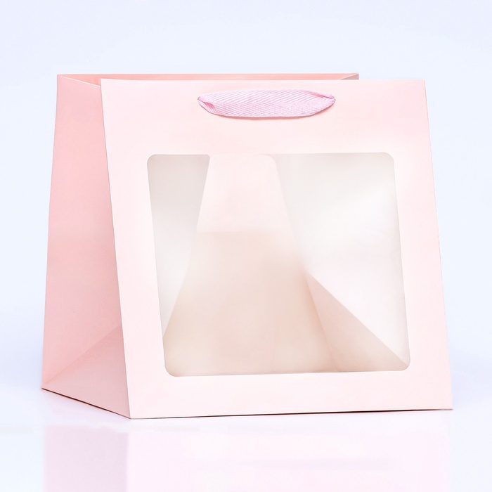 Пакет подарочный, крафт, с окном, «Розовый», 25×25×25 см