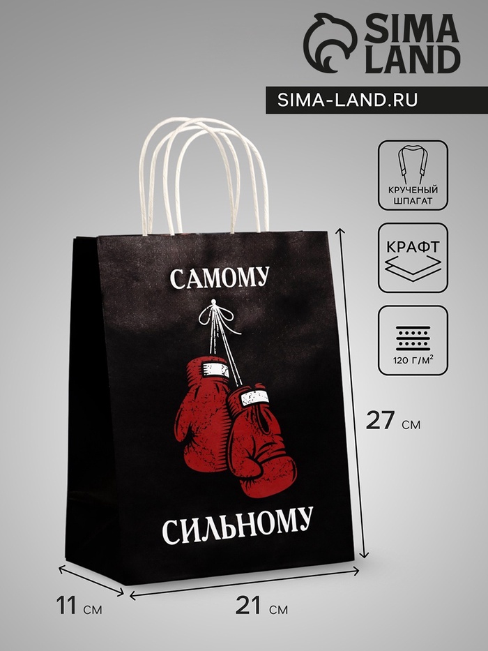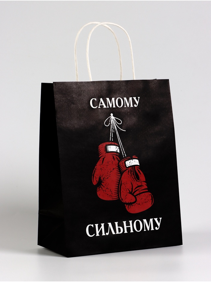 Пакет подарочный крафт «Самому сильному», 21×11×27 см