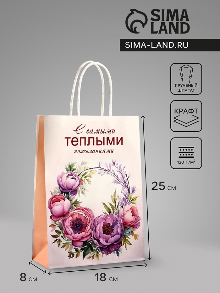 Пакет подарочный крафт, «Самыми теплыми воспоминаниями», 18×8×25 см