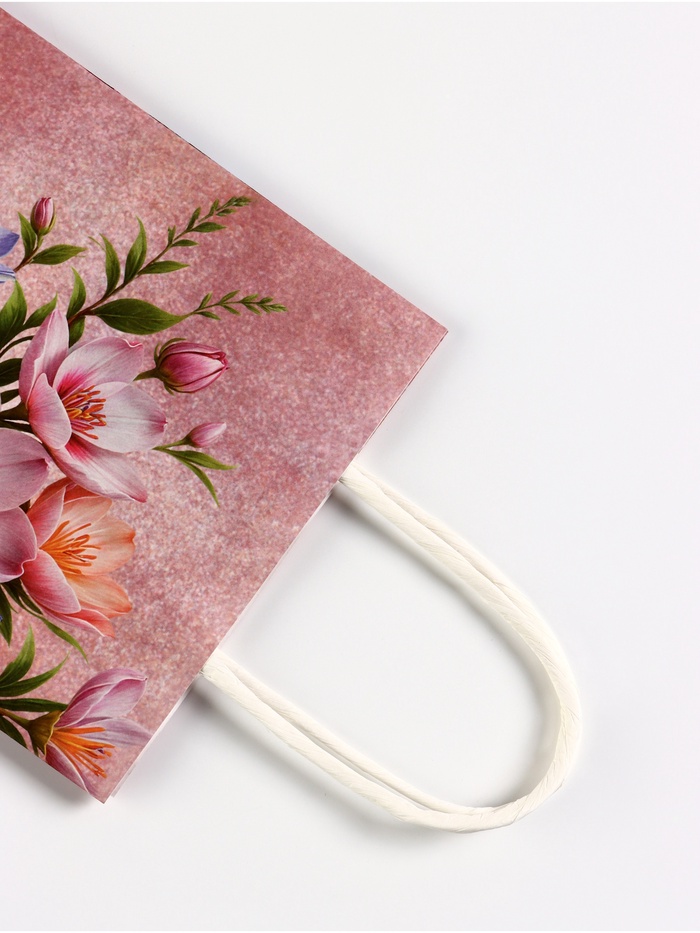 Плотность бумаги 120 г/м² гарантирует прочность и надёжность пакета, позволяя безопасно переносить даже хрупкие и ценные вещи.