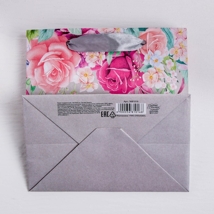 Пакет подарочный крафтовый квадратный, упаковка, «С нежной любовью», 14 х 14 х 9 см