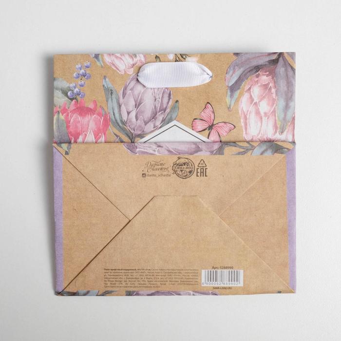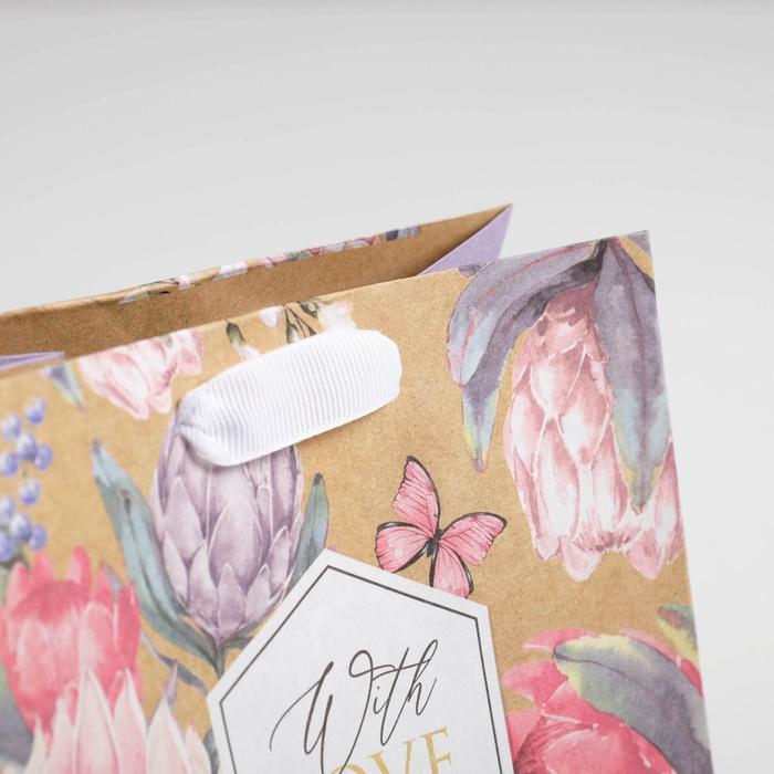 Пакет подарочный крафтовый квадратный, упаковка, «With love», 14 х 14 х 9 см