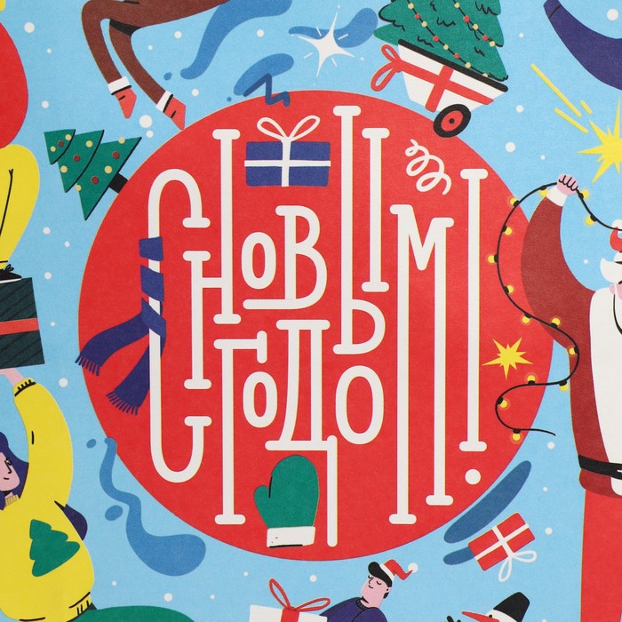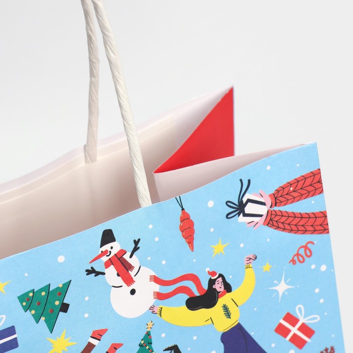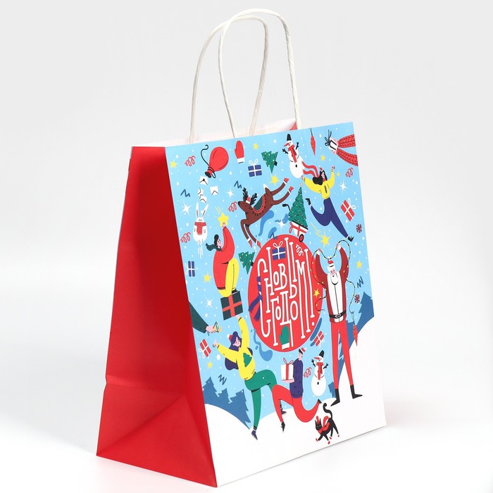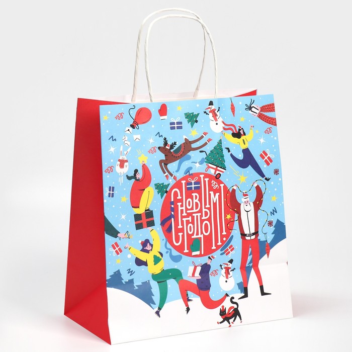 Пакет подарочный крафтовый «Новогодняя суматоха», 22 х 25 х 12 см