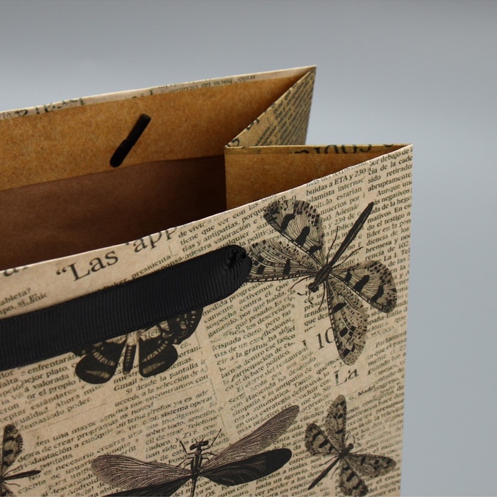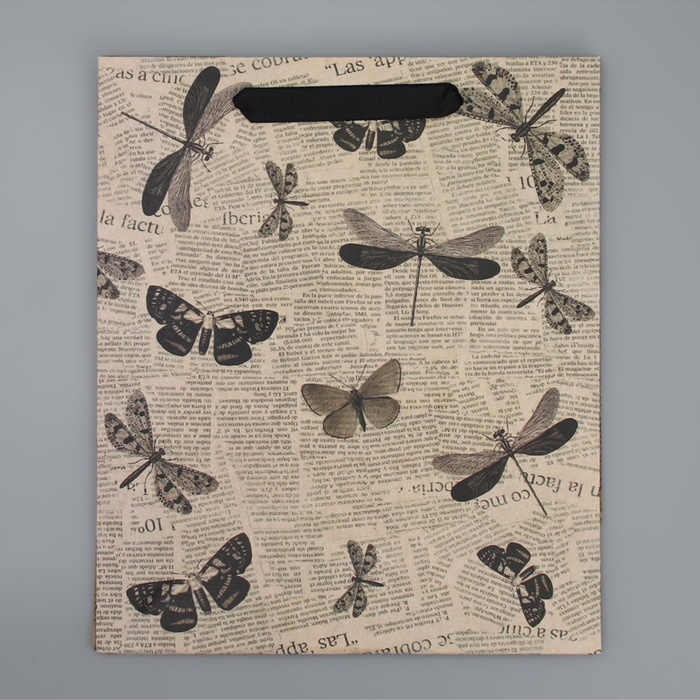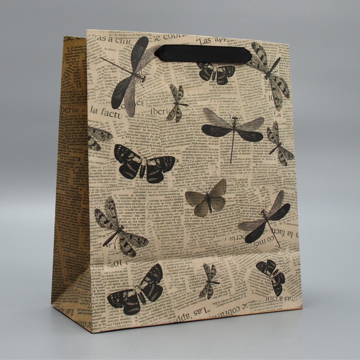 Пакет подарочный крафтовый, упаковка, «Бабочки», 23×27×11.5 см