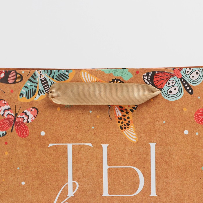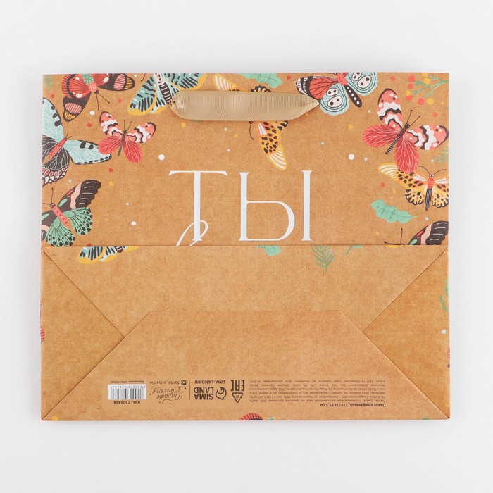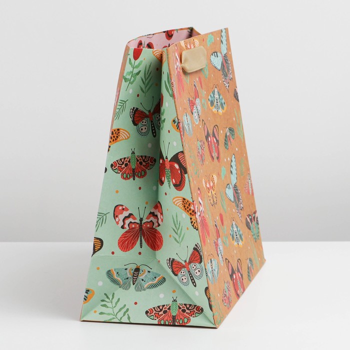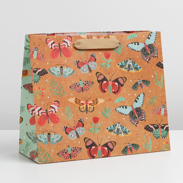 Пакет подарочный крафтовый, упаковка, «Бабочки», ML 23 х 27 х 11.5 см